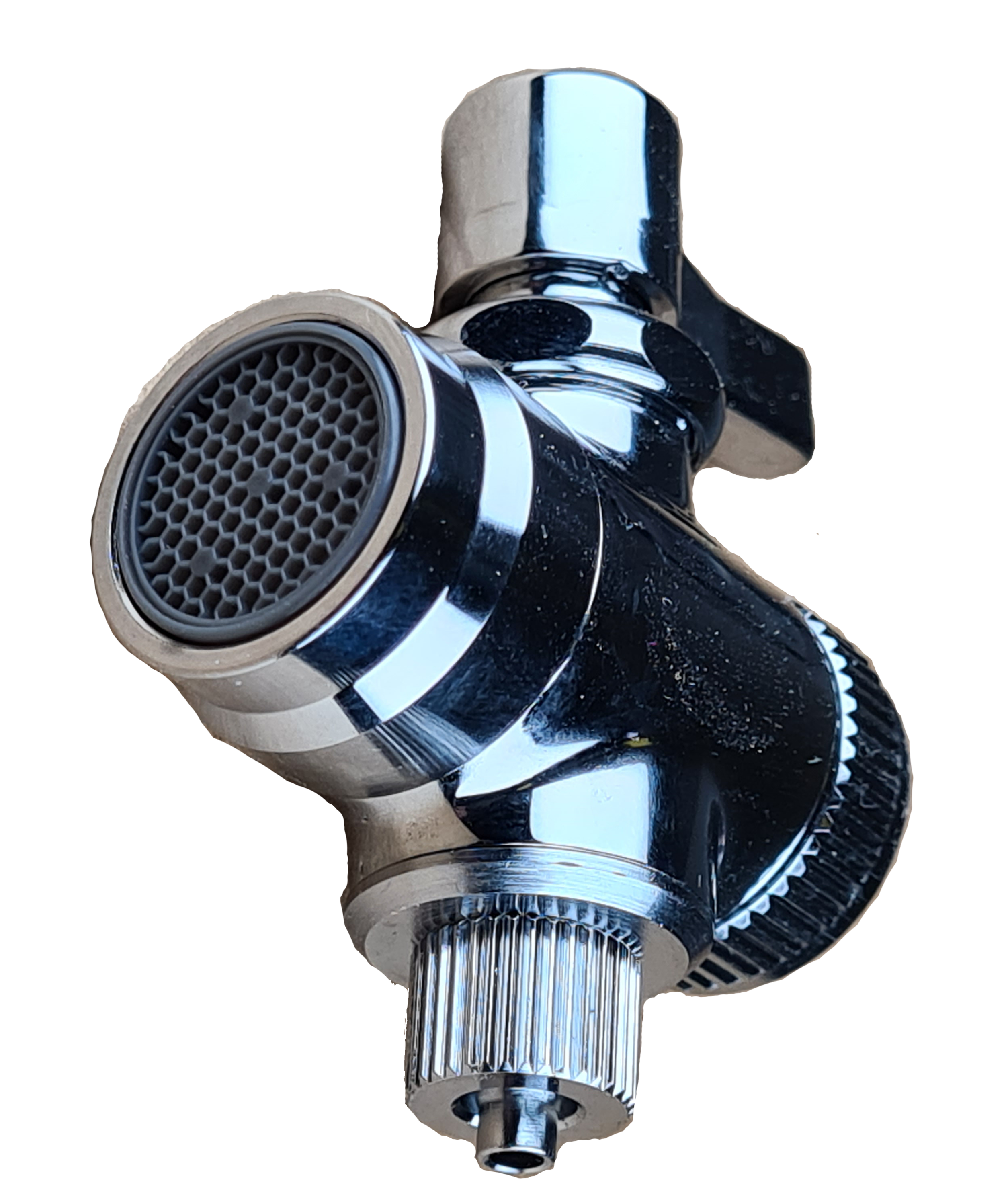 Wer kein Loch in die Arbeitsplatte seiner Küche schneiden mag oder darf und seinen Aquionisierer nicht direkt an die Kaltwasserleitung anschließt, für den ist dieses praktische Ergänzungsset die optimale Lösung. Das verchromte Ventil wird direkt am Wasserhahn Ihrer Spüle angebracht und ist kinderleicht zu bedienen: Einfach den kleinen Hebel umlegen und schon läuft das Leitungswasser direkt in Ihren Aquionisierer und wird zu natürlich-frischem Trinkwasser in Bio-Qualität. Nachdem Sie den Hebel wieder zurückgelegt haben, läuft Ihr Leitungswasser wieder wie gehabt aus dem Wasserhahn. Durch die Wahlmöglichkeit kann der Wasseradapter ständig am Wasserhahn angeschlossen bleiben.