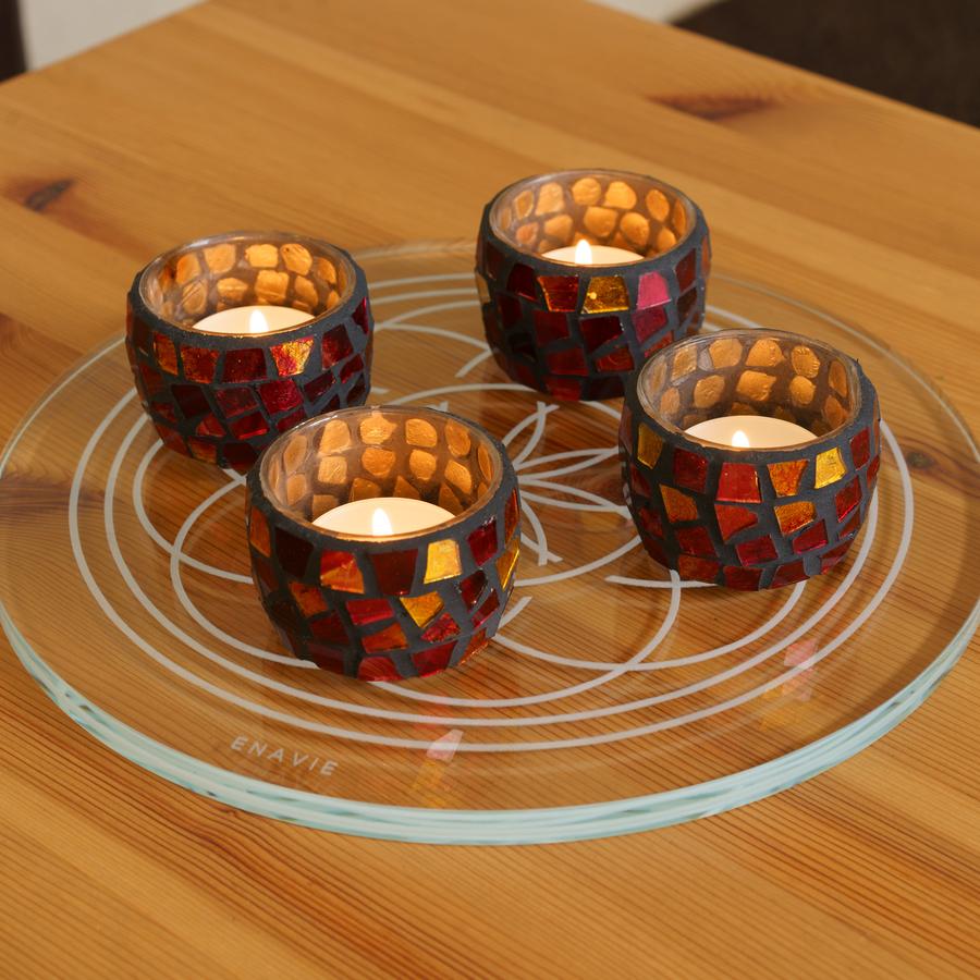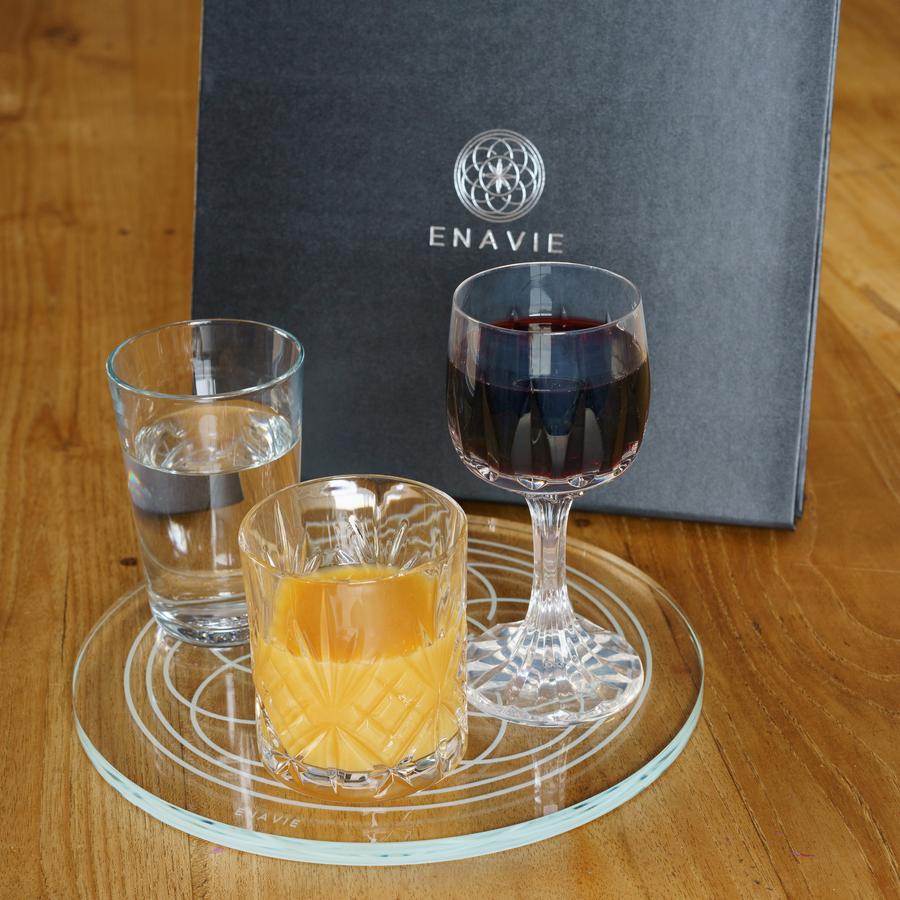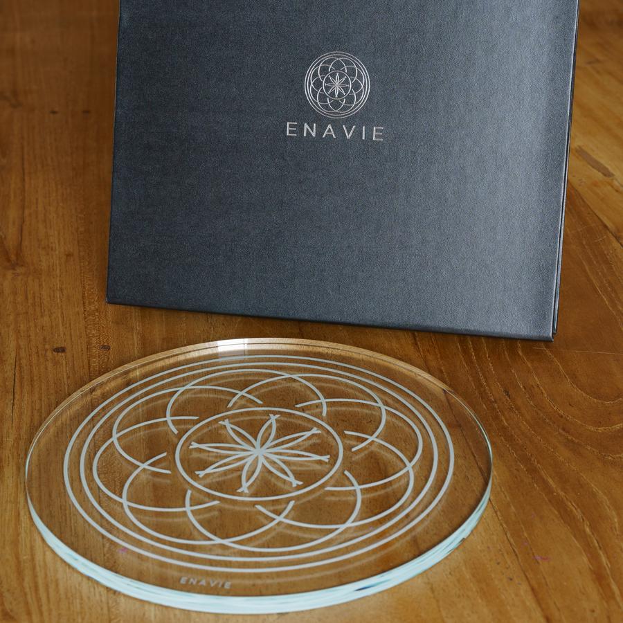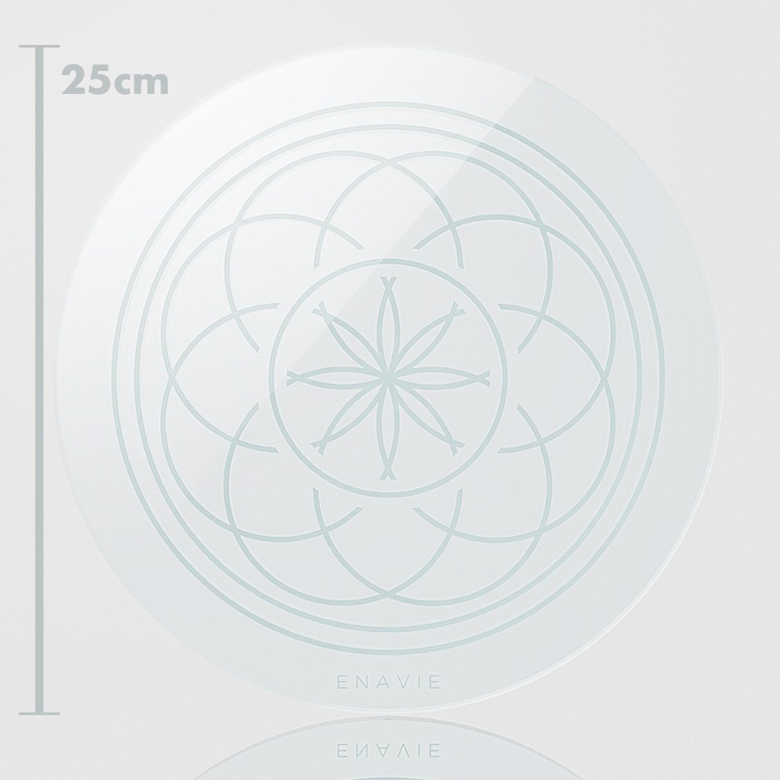 Die Power Version enthält eine große ENAVIE HARMONY Energieplatte in den Maßen 25 cm (Durchmesser) x 1 cm (Höhe). Das hochwertige Glas wurde mit einem speziell patentierten Laserverfahren veredelt. Mittig in der Platte sitzt das lasergravierte Heilzeichen und der Schriftzug ENAVIE, der dir noch mehr Energie im Leben schenkt. Die Energieplatten sind spülmaschinenfest und lassen sich sehr gut reinigen.