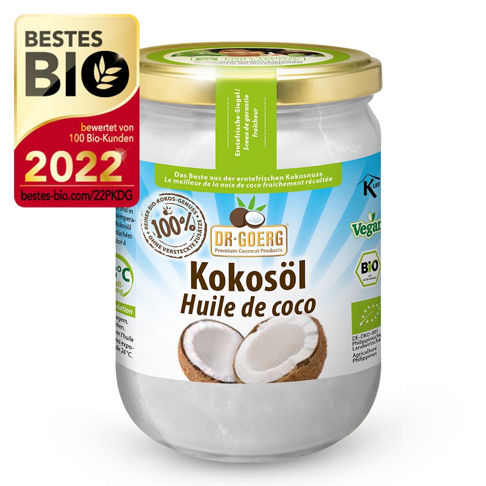 Das Original von Dr. Goerg. Die jungen, grünen, erntefrischen Bio-Kokosnüsse für unser Bio-Kokosöl werden besonders früh, schonend per Hand und komplett ohne den Einsatz dressierter Ernteaffen geerntet.Unser naturbelassenes Bio-Kokosöl wird in 1. Kaltpressung aus erntefrischen Kokosnüssen innerhalb von max. 72 Stunden nach der Ernte hergestellt. Die hervorragende Qualität der Früchte sowie die schonende Verarbeitung bedingen ein Premium-Produkt mit zartem Aroma. So wurde das Dr. Goerg Bio-Kokosöl (500 ml) vom Naturkostmagazin Schrot & Korn als BESTES BIO 2020 ausgezeichnet. Es wird weder desodoriert noch raffiniert, es ist ungebleicht und ungehärtet und kann problemlos hoch erhitzt werden.Ideal zum Backen, Braten, für Pfannen- & Wok-Gerichte, zum pur Genießen oder zur Haar- & Hautpflege geeignet. Zum Beispiel als Butterersatz in Kuchen und Gebäck oder als Brotaufstrich.