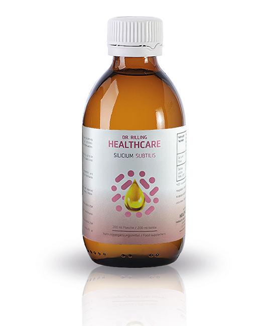 Mineralisches Nahrungsergänzungsmittel auf Basis von MCT-Öl (pflanzliches Öl), Silizium und ‚Bacillus subtilis DSM21097 auf flüssiger Basis:Ein ausgewogenes Produkt zur dauerhaften Ergänzung der Siliziumaufnahme und zur Erhaltung der natürlichen Darmflora mit doppelter Dosis und gewohnt bioverfügbar für die ganze Familie.