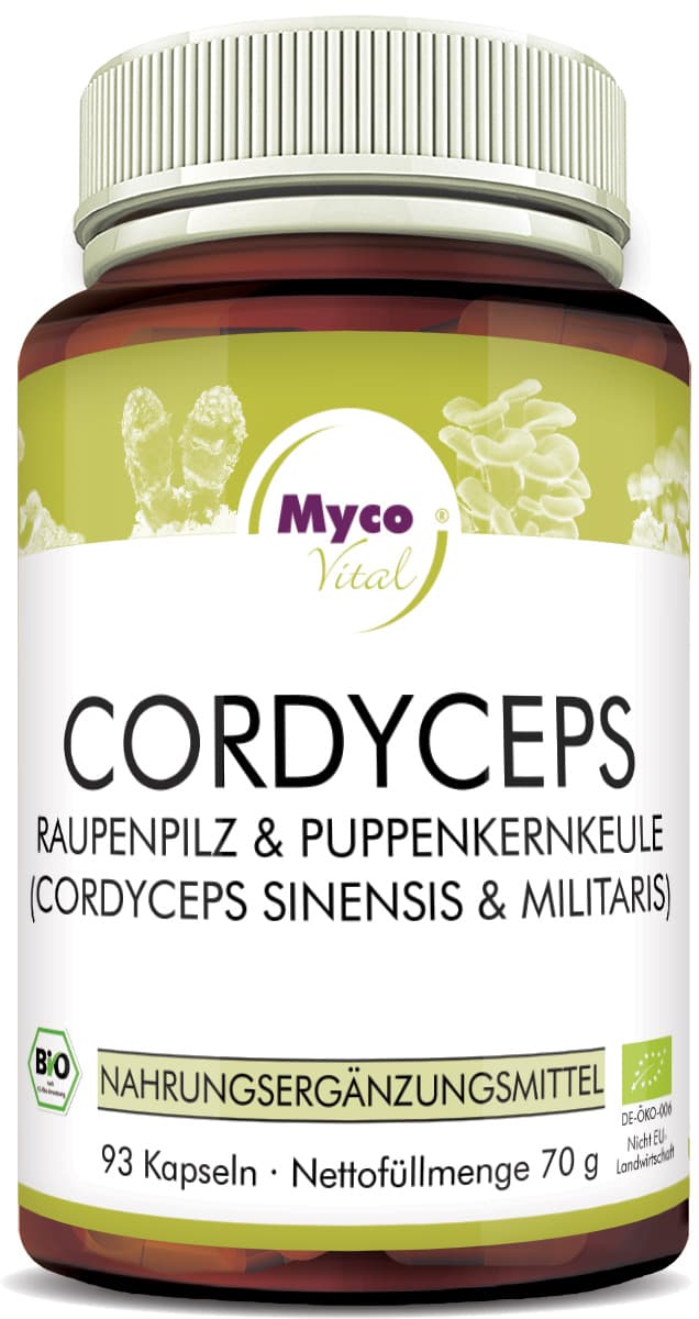 3 x täglich 1 Kapsel mit Cordyceps Bio Vitalpilzpulver zu den Mahlzeiten mit reichlich Flüssigkeit.